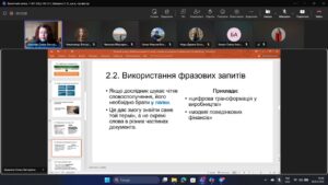 - лайфхакам для фінансистів. Зокрема на прикладах таких тем, як «фінансова безпека підприємства» чи «цифрова трансформація», було продемонстровано, як правильно підбирати ключові слова та їхні англомовні відповідники.