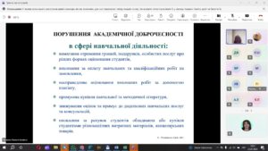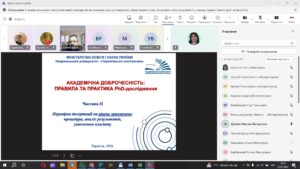 Під час семінару було висвітлено теоретичні аспекти дотримання норм і принципів академічної доброчесності у процесі підготовки дисертаційних робіт, а також розглянуто особливості перевірки на плагіат і оцінювання рівня текстових запозичень.