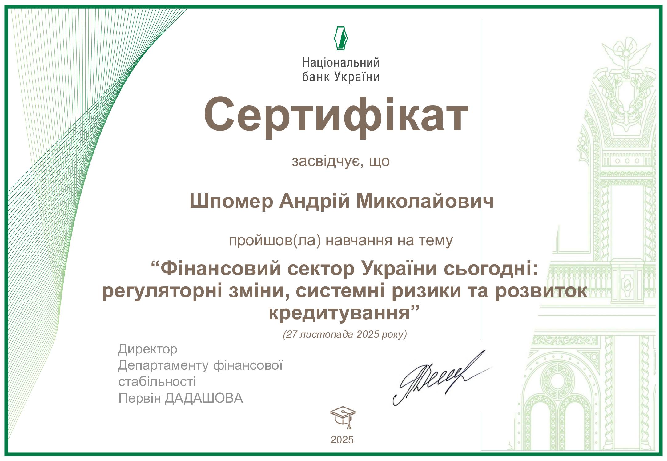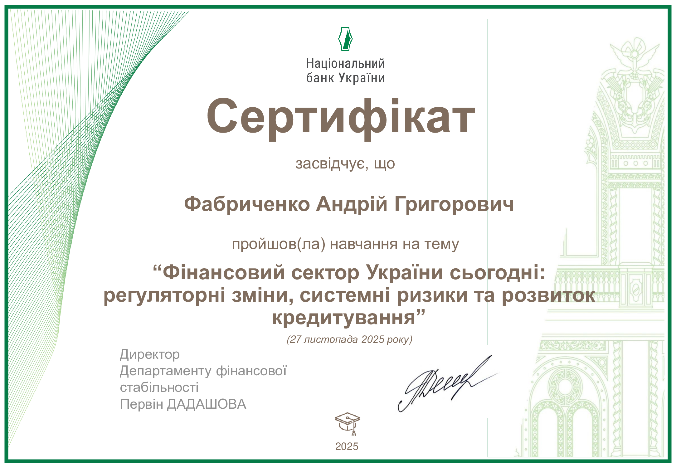 За результатами навчання всі учасники отримали сертифікати, підписані Директором Департаменту фінансової стабільності НБУ.