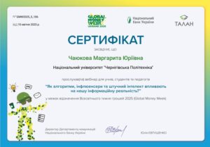 20.03.2025р. в рамках проведення Global Money Week-2025 відбувся вебінар на тему “Як алгоритми, інфлюенсери та штучний інтелект впливають на нашу інформаційну реальність?”.