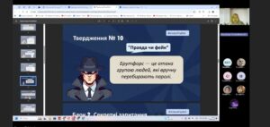 В ході виконання завдань марафону ЗВО переглянули освітній курс #ШахрайГудбай та презентацію НБУ на тему «Історія шахрайства з грошима: від фальшивомонетництва до кібершахрайства». Після цього ЗВО були поділені на команди, кожній з яких були роздані детективні справи. Команди презентували результати своєї роботи, надаючи обґрунтовані відповіді на ситуації, пов’язані з шахрайськими діями, наприкінці взяли участь у участі у грі «Вакансія чи афера? Розпізнай ризик» та «Правда чи фейк?».