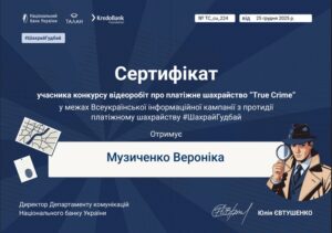 Вітаємо з отриманням сертифікатів за участь в конкурсі “True Crime”, організованому НБУ!