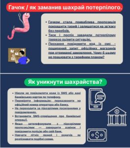 В ході проведення заходів здобувачі вищої освіти 4 курсу неекономічних спеціальностей гр. КІ-221-223, КБ-221,222, ПІ-221-222, БА -221-222 переглянули освітній курс #ШахрайГудбай, ознайомилися з презентацією НБУ на тему «Історія шахрайства з грошима: від фальшивомонетництва до кібершахрайства», презентували відповіді на кейс-картки, надали обґрунтовані відповіді на шахрайські повідомлення, узяли участь в грі «Вакансія чи афера? Розпізнай ризик» та «Правда чи фейк?».